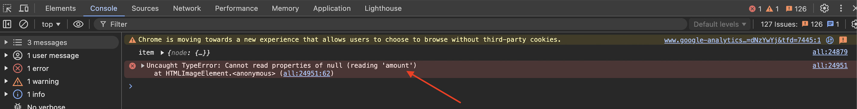 Uncaught TypeError: Cannot read properties of null (reading 'amount')