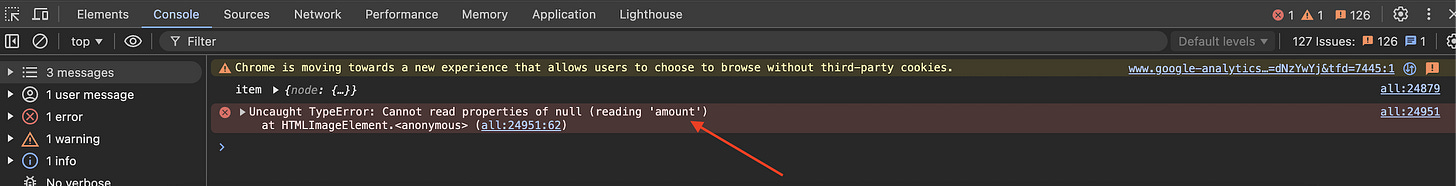 The analysis confirmed the suspicion: the code was accessing a product's compareAtPrice