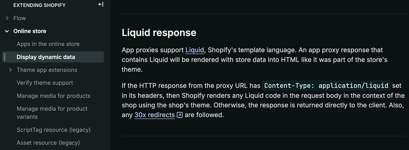 App Proxy — https://shopify.dev/docs/apps/build/online-store/display-dynamic-data#liquid-response