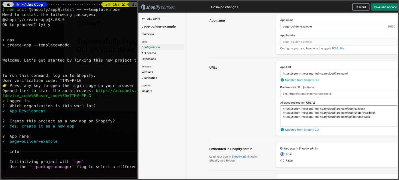 Shopify guides are pretty easy to follow for scaffolding a Shopify App from pre built templates.