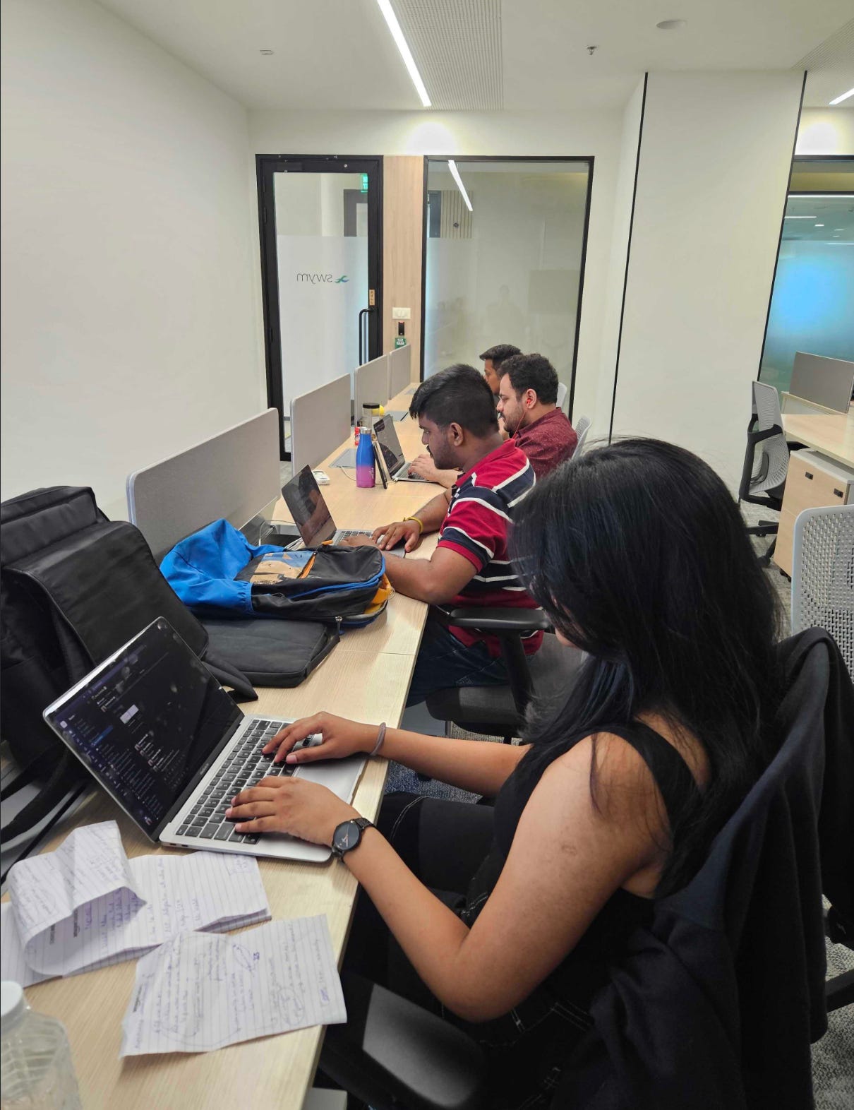 The B-plot: As we missed sleep (and trains) to get to Bangalore, we weren’t exactly at our sharpest. Sleepy heads and oncoming migraines hit us hard - thankfully, nothing a little Paracetamol and coffee couldn’t fix. As our hands fiddled with the fresh batch of stickers we’d just been gifted , our brains looped on the problem statement, again and again, until we finally cracked it.