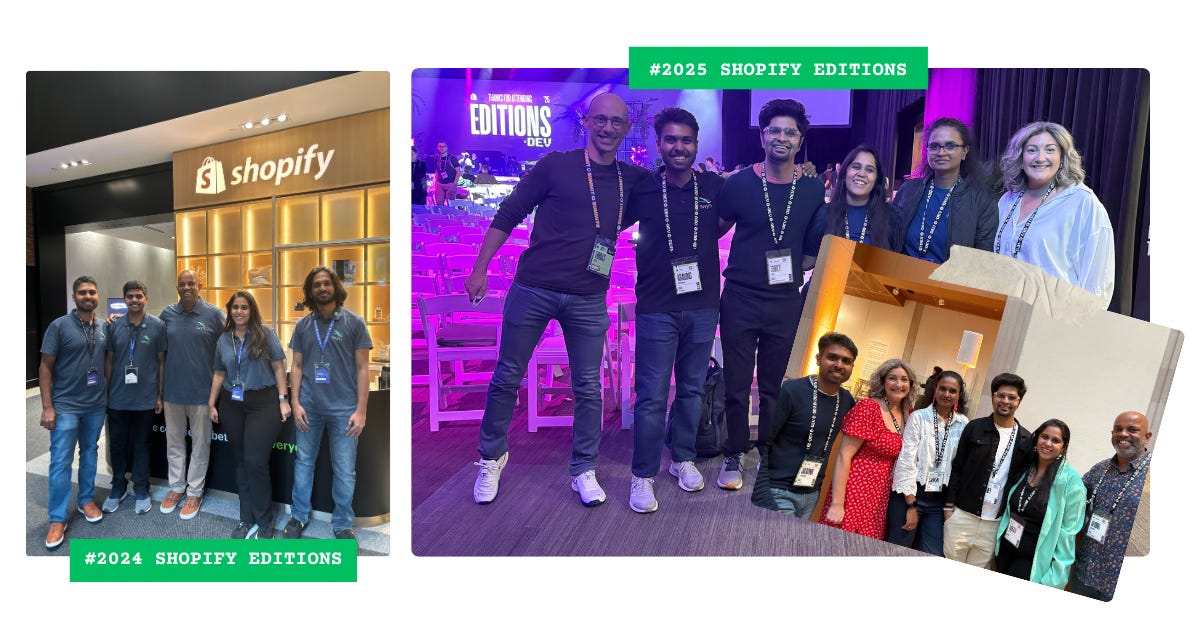 We got our Built for Shopify badge in between those two trips — a milestone that came directly from connections made during my first Editions experience. That tiny step — one conversation, one follow-up — led to something much larger. Adrian Anderson and Riley Zammit were key in reviewing our app for BFS and continued to stay in touch. That kind of support made a real difference.